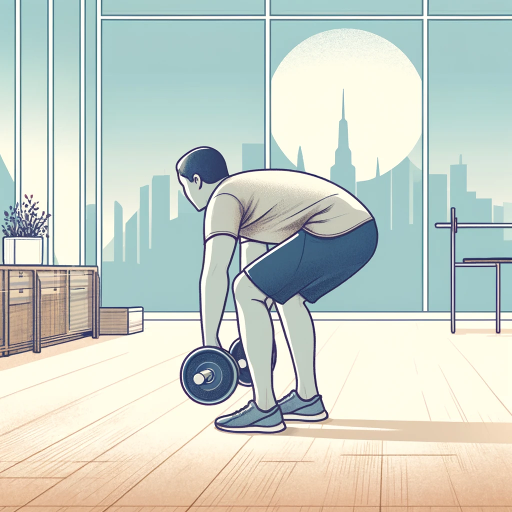 다리를 살짝 구부린 채, 덤벨을 바닥 가까이로 내렸다가 들어올리는 동작